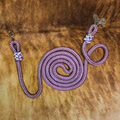 7 ft hand-dyed plum purple reins with cream and cotton candy decorative paracord Turkshead knots.
