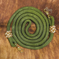 5/8" 7ft olive green reins with brass snaps and decorative paracord turkshead knots
