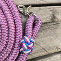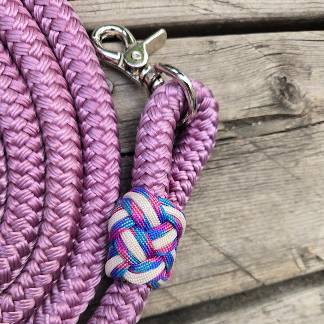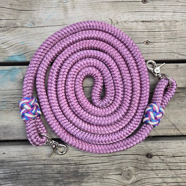 8 ft hand dyed reins in rose pink colour with cream and cotton candy paracord.