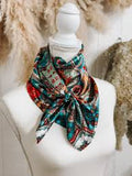 Our Turquoise Bazaar Wild Rag blends bold Western spirit with a touch of boho elegance. Measuring 35" x 35" (90 x 90 cm), this large square scarf gives you endless styling freedom — perfect for the ascot knot, bandana tie, buckaroo knot, or hookeye knot. Whether you're out on the ranch or headed to a night out, this scarf adds instant character to any look.
